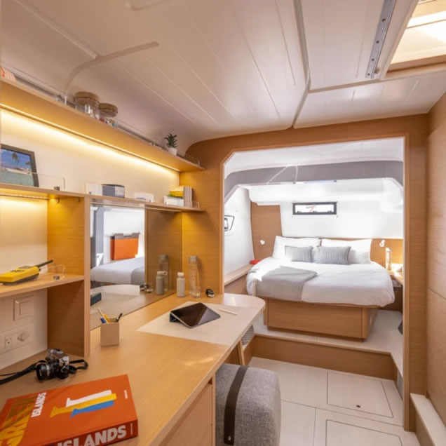 Excess 14 Catamaran Lower Deck Floorplan (Cabins | Multi-Purpose Room)